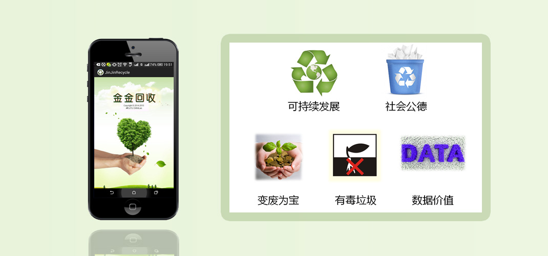 金金回收是一个垃圾分类回收应用创意,利用政府开放数据,构建了一个全新的商业模式,让市民、志愿者、环卫、政府以及企业等利益相关方身处同一个利益链条,实现共赢。获得了上海市2014年开放数据创新大赛冠军